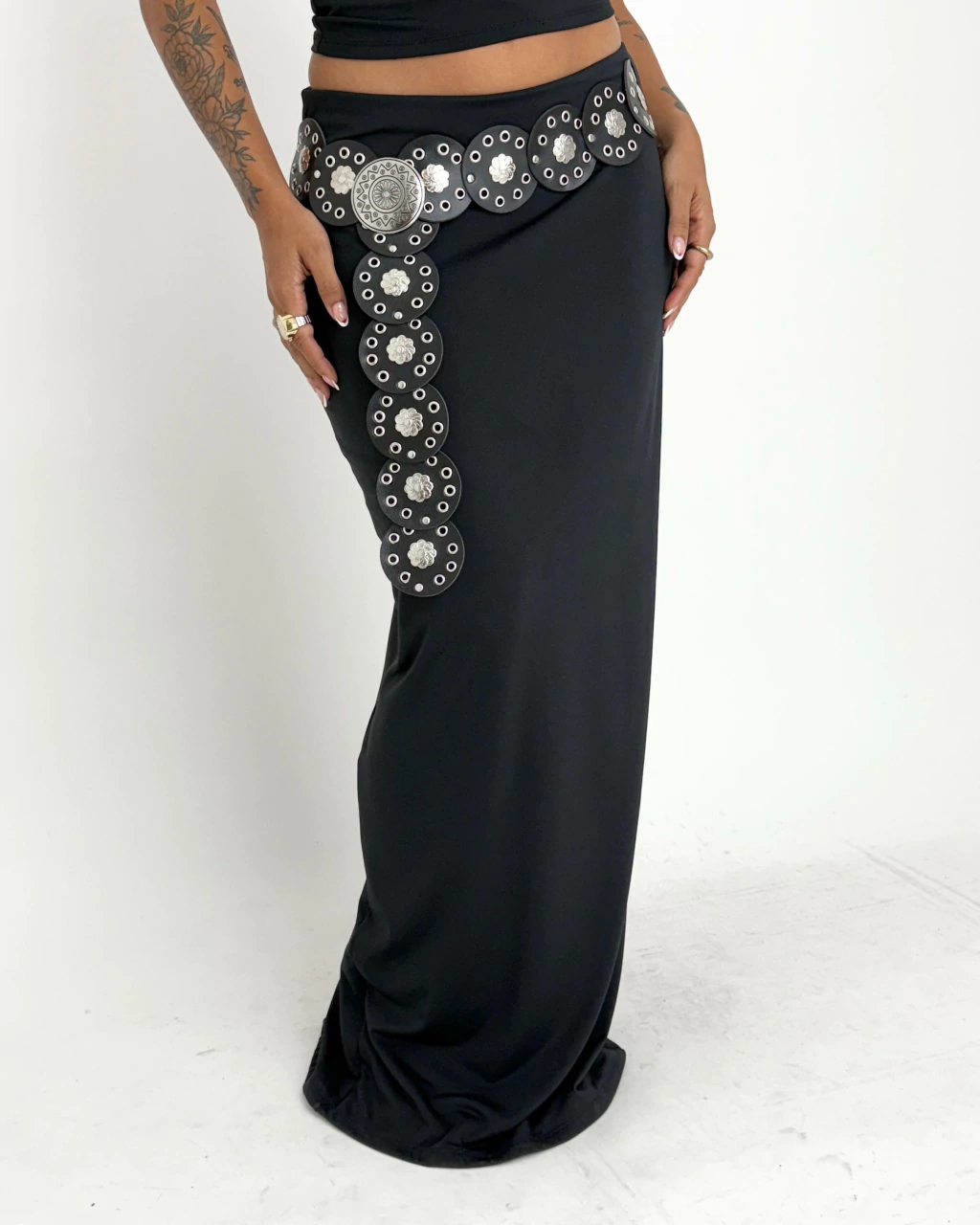 Elegante, versátil e sem erro. Com modelagem sereia e caimento impecável, essa saia longa vai até os pés e alonga a silhueta.